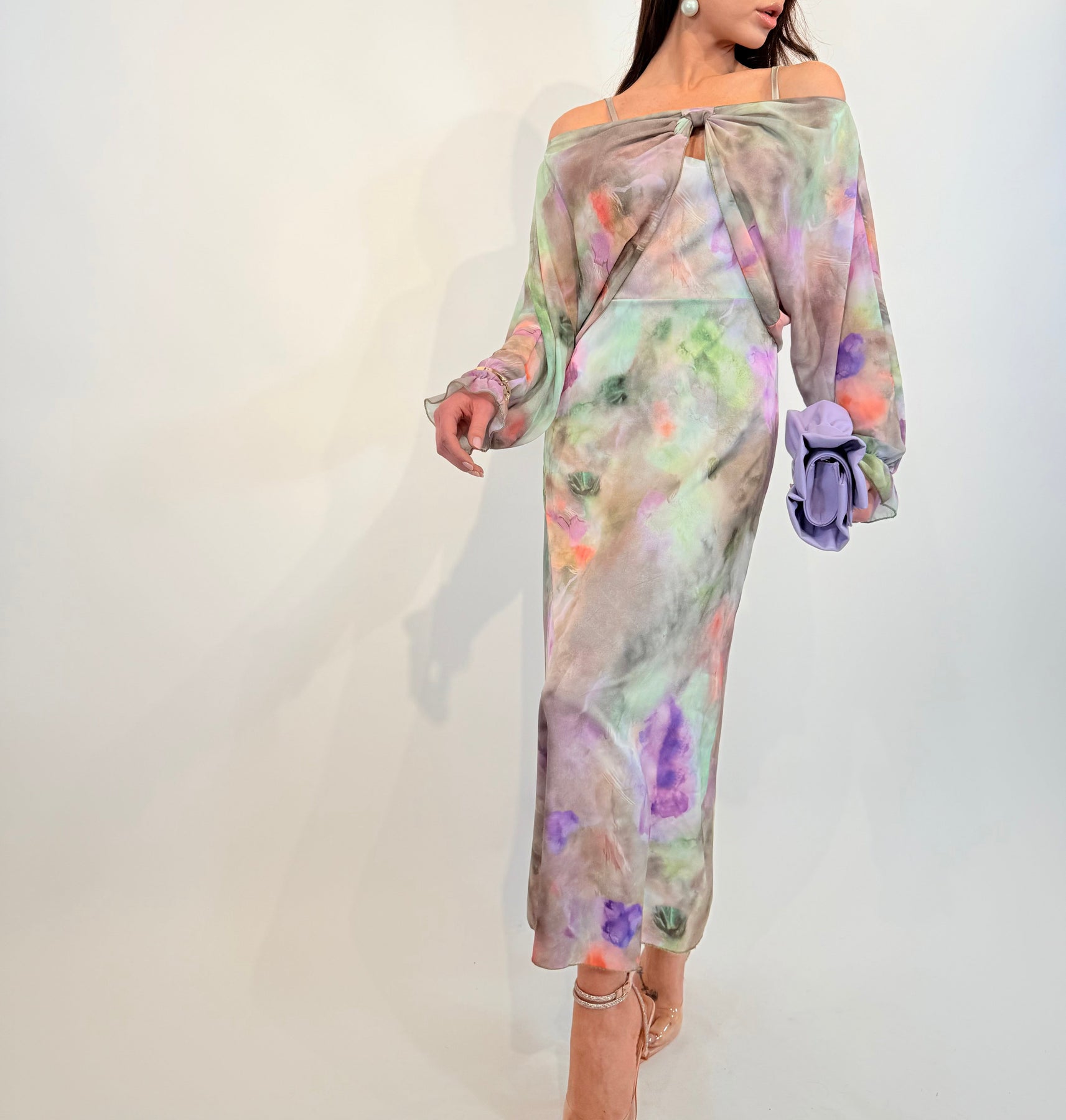 Step into timeless beauty with the Dea™ Elegant Vibrant Dress, designed to make every occasion special. This long dress features delicate thin straps and a lively floral pattern, paired with a matching detachable long-sleeved bolero. Whether worn together or separately, it offers you flexible styling options to match your mood and event.