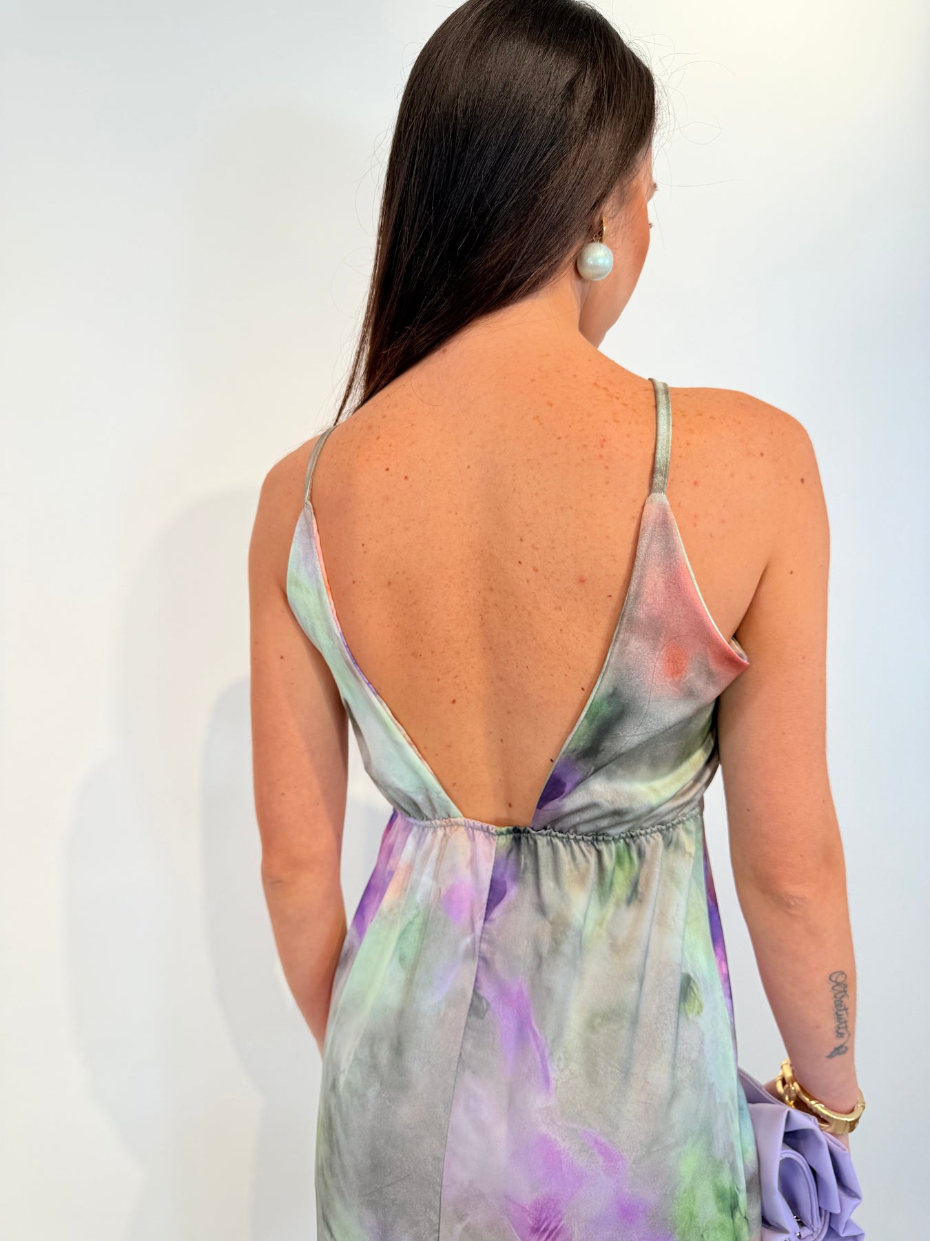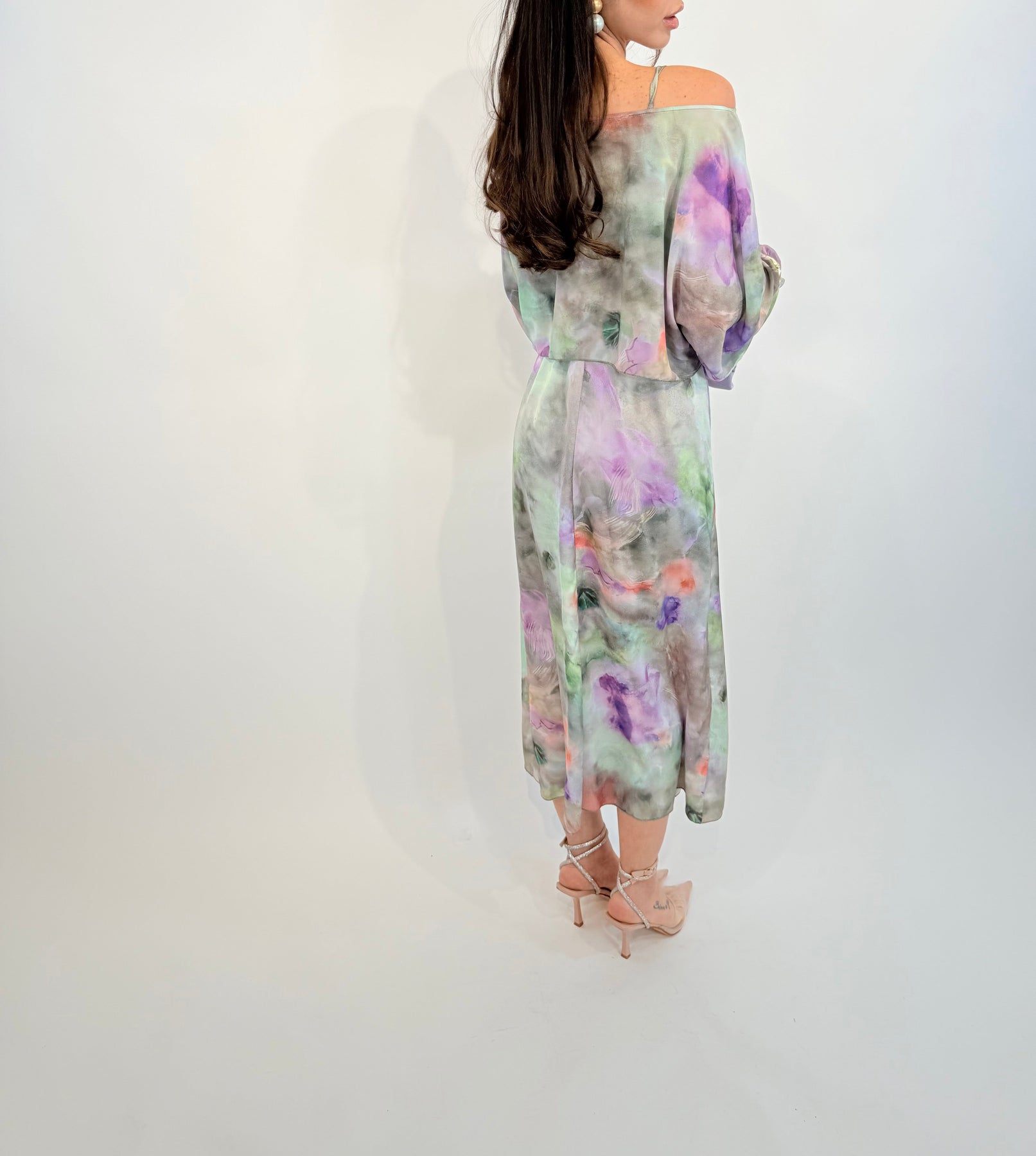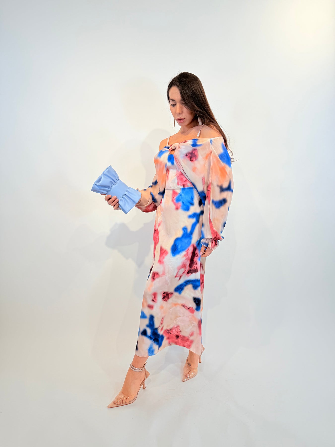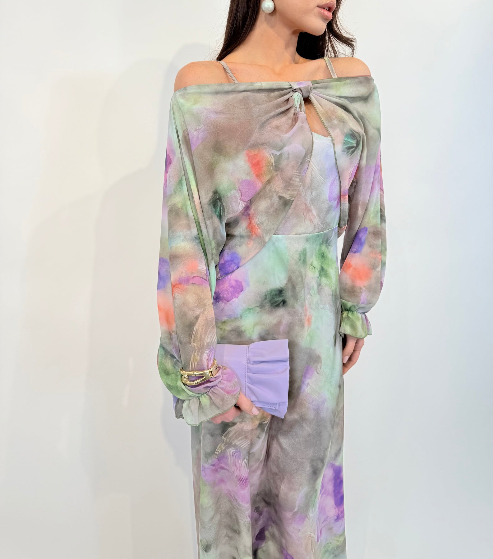 • Elegant design: Long flowing dress with a vibrant floral print.