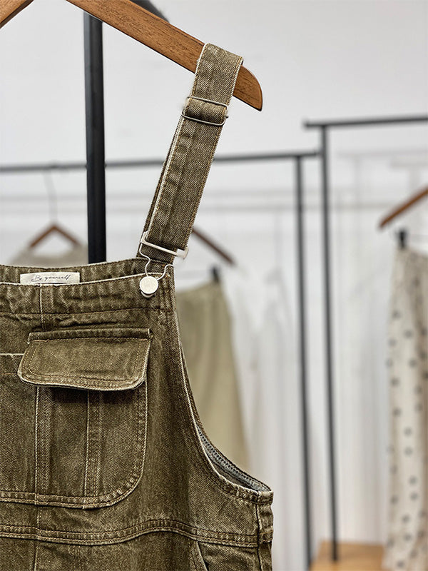 This dungaree dress with a cargo pocket is made from durable, high-quality denim and features a relaxed fit that drapes beautifully, making it both comfortable and stylish. It has adjustable shoulder straps for a customised fit, and the front bib pockets add a touch of vintage flair. Large side pockets are not only stylish but also practical, perfect for carrying essentials. The mid-length and slightly worn finish enhance its vintage look, making it ideal for casual outings, weekend adventures, or even a trip to the market.