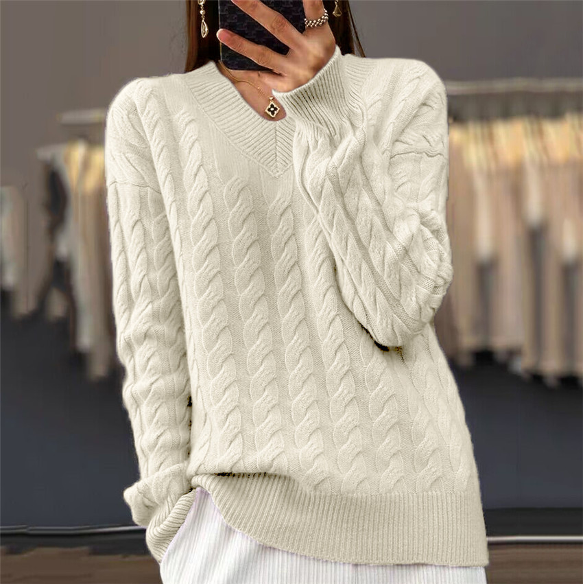 Timeless Nordic Charm with the Juni | Scandinavian V-Neck Twisted Knit Sweater